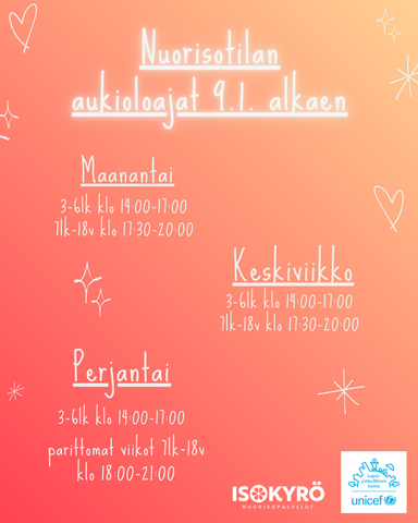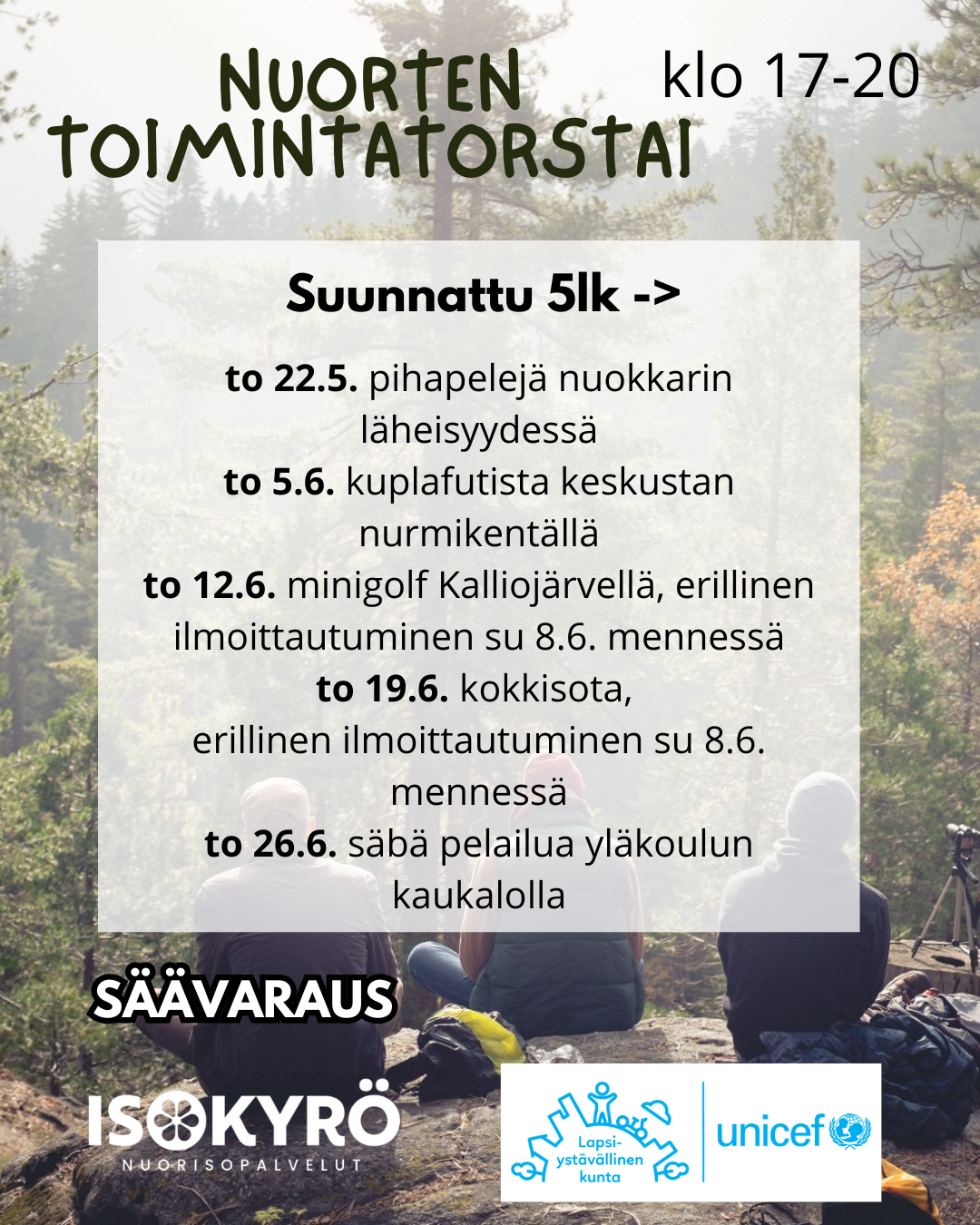 Muutoksista ilmoitamme Isonkyrön nuorisopalveluiden instagram- ja facebook-tilillä sekä nettisivuilla.