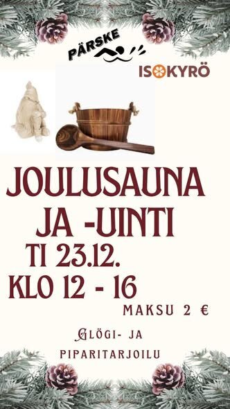ti 23.12. joulu-uinti, uimahalli avoinna klo 12 - 16