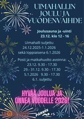 24.12.2025 - 1.1.2026 uimahalli suljettu