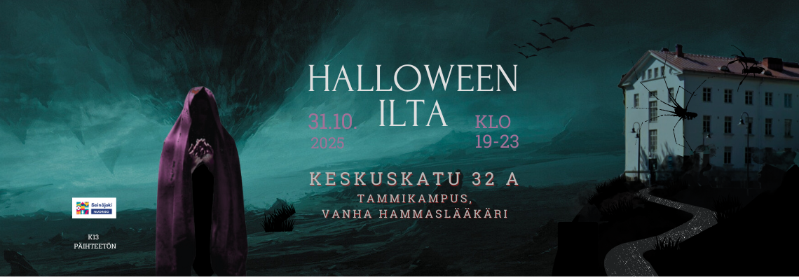 Seinäjoen nuorisopalvelut järjestää perjantaina 31.10. klo 19-23 Halloween illan vanhalla hammaslääkärillä, Tammikampuksella. Tapahtuma on maksuton, päihteetön ja suunnattu yläkouluikäisille (K13) sekä sitä vanhemmille nuorille.