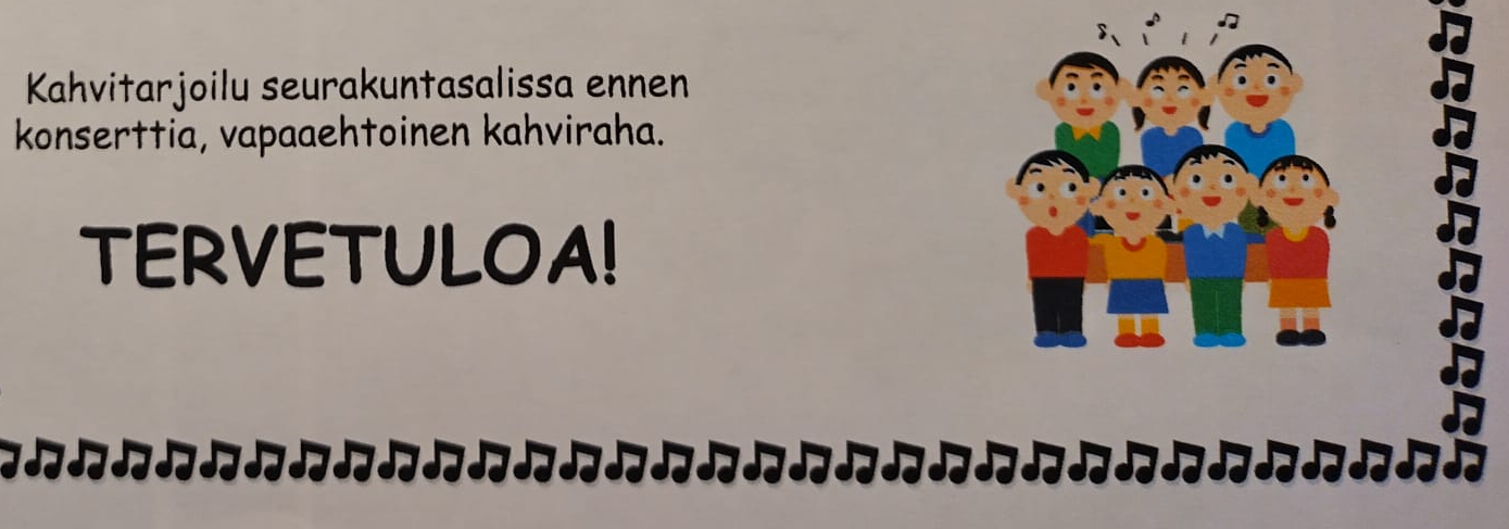 Kahvitarjoilu seurakuntasalissa ennen konserttia. Vapaaehtoinen kahviraha.