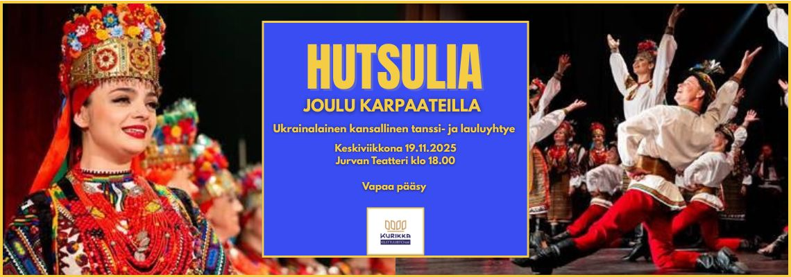 Ukrainan kansallinen laulu- ja tanssiyhtye Hutsulia (Ivano-Frankivsk, Ukraina) tuo Jurvaan säihkettä, rytmiä ja karpaattien taikaa esityksellään Joulu Karpaateilla. Päivän aikana yhtye esiintyy ensin Jurvan yhtenäiskoulun oppilaille ja illalla tarjoaa kaikille avoimen juhlan värin, musiikin ja tanssin merkeissä.