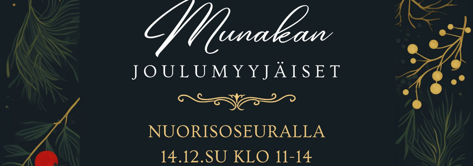 Perinteiset ihanasta tunnelmasta tunnetut Munakan joulumyyjäiset lähestyvät jälleen. Myyjiä noin 30. Arpajaiset huikeilla palkinnoilla. Kahviosta herkkuja.