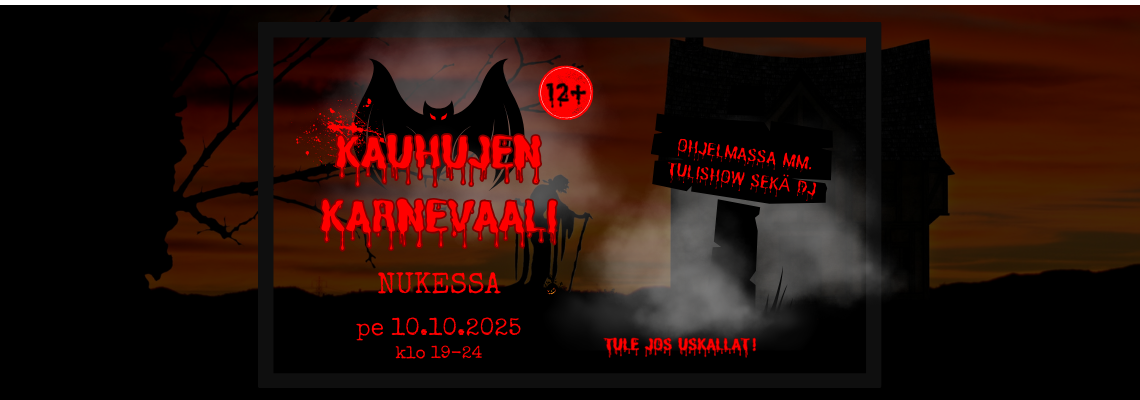 Syyslomaviikon alkajaisiksi pe 10.10.2025 tarjotaan nuorille Kauhujen karnevaali Nukessa klo 19-24. Ohjelmassa on mm. tulishow, DJ, erilaisia kauhupisteitä yms. kammottavaa. Tule jos uskallat!