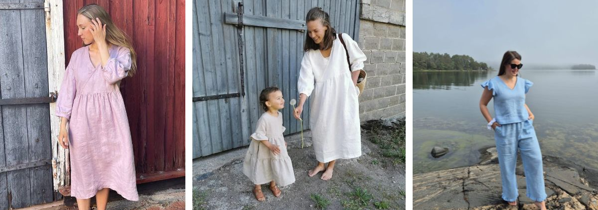Myynnissä kivipestyä pellavakangasta sekä Kaavalan ompelukaavoja