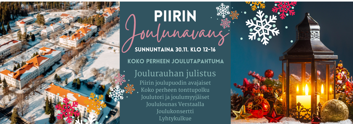 Ota mukaan oma lyhty ja tule kanssamme Piirin perinteiseen lyhtykulkueeseen. Lyhtykulkue aloittaa Seuralasta klo 15.30 ja kulkee Piirin läpi Piirin kirkon kautta Piirin torille, jossa sytytämme Piirin jouluisen kuusimaailman jouluvalot päälle yhdessä.