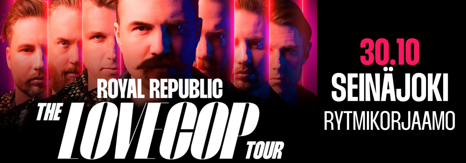 Ruotsalainen power-disco-kvartetti Royal Republic palaa Suomeen ensi syksynä kolmen keikan voimin. Hurjalla live-energiallaan yleisöt kautta maailman villitsevän yhtyeen The LoveCop -kiertueen Suomen-osuus käynnistyy Seinäjoen Rytmikorjaamolta torstaina 30. lokakuuta, jonka jälkeen matka jatkuu perjantaina 31. lokakuuta Helsingin Tavastialle, jonka jälkeen yhtye esiintyy Tampereen Olympiassa lauantaina 1. marraskuuta. Kitararockia ja tarttuvia koukkuja omintakeisella tyylillään sekoittavan Royal Republicin keikkojen lipunmyynti käynnistyy Tiketissä perjantaina 11. heinäkuuta klo 11.