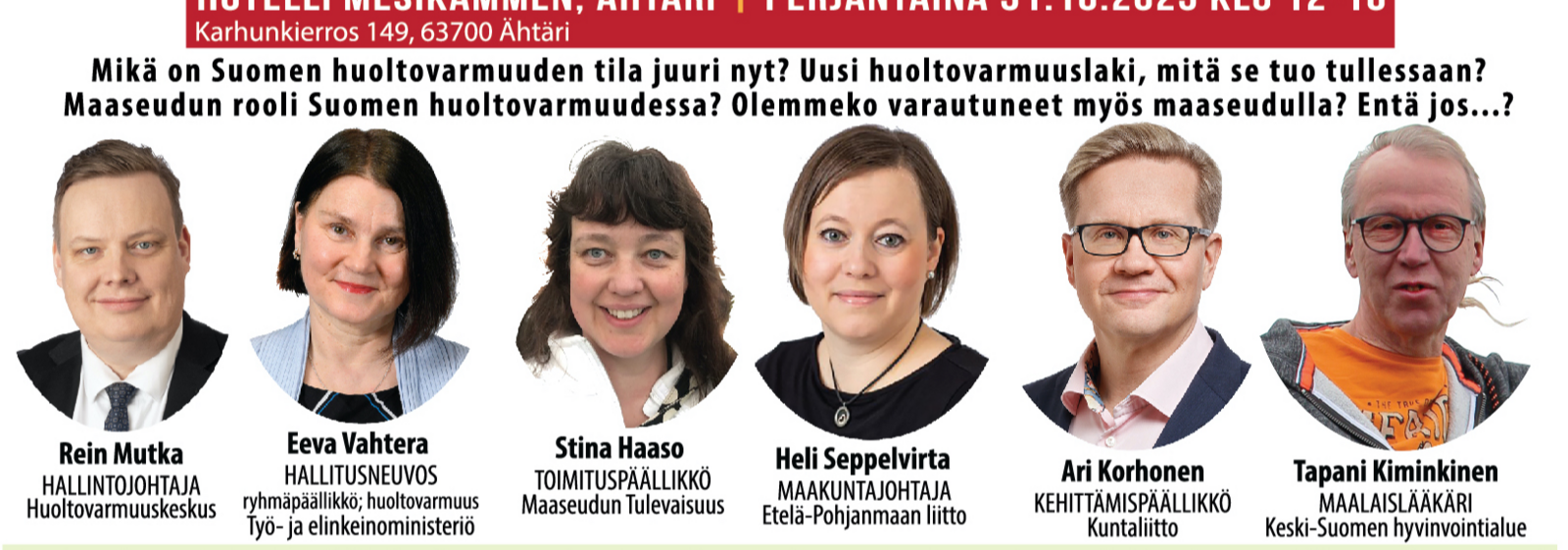 Seminaari on tarkoitettu kaikille huoltovarmuuden, turvallisuuden ja varautumisen asiantintijoille, viranomaisille, kuntapäättäjille, yrittäjille, tuottajille, tutkijoille, maaseudun ja kylien kehittäjille... Ilmoittautuminen seminaariin tämän linkin kautta