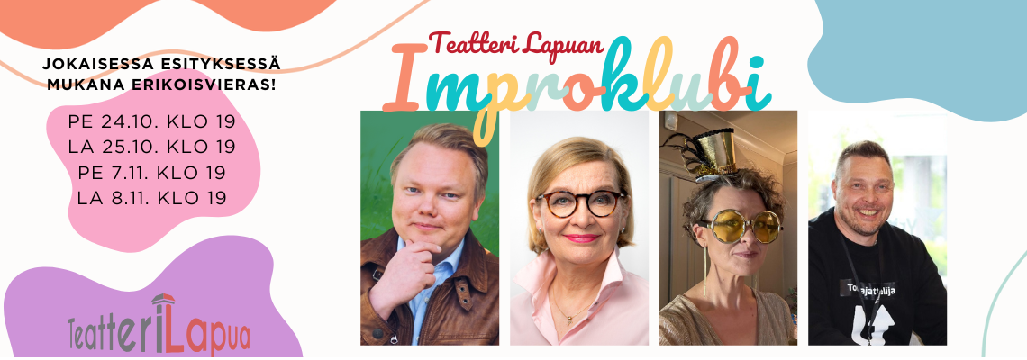 Teatteri Lapuan Improklubi tulee sisältämään neljä improntäyteistä iltaa, joista jokaisessa mukana improamassa erikoisvieras!