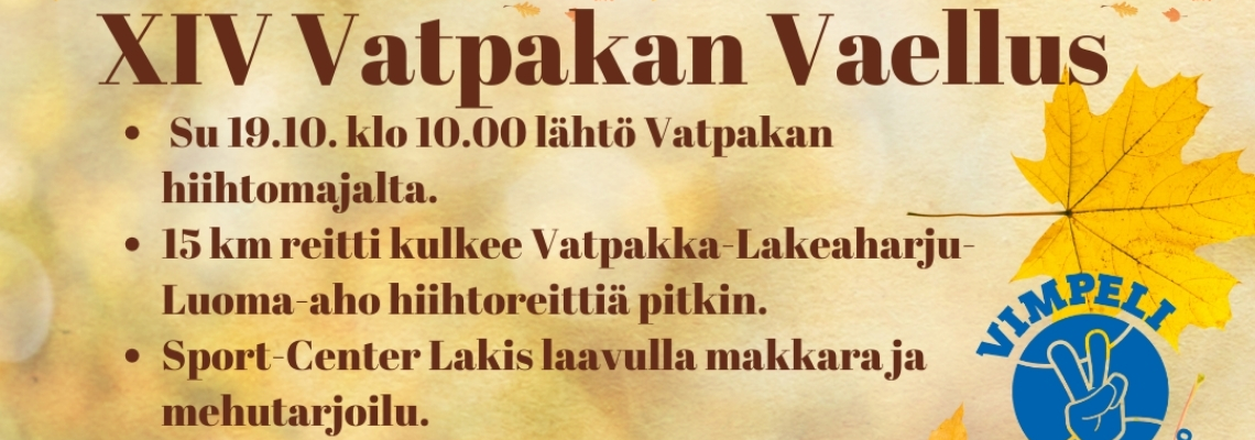 15 kilometrin reitti kulkee Vatpakka-Lakeaharju-Luoma-aho hiihtoreittiä pitkin. Matkan varrella Sport Center Lakis-laavulla makkara- ja mehutarjoilu. Maasto helppokulkuista.